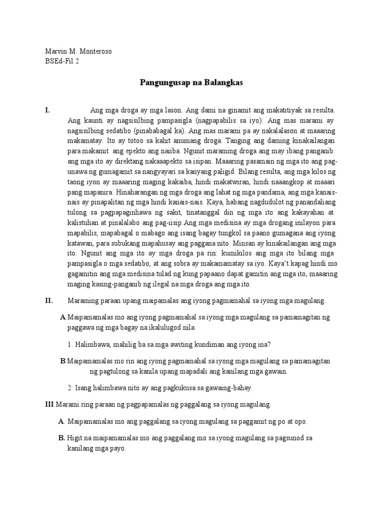 222021 Sanaysay Tungkol sa Bawal na Gamot o Droga Article 1 Narito ang isang artikulo o sanaysay essay tungkol sa bawal gamot na sinulat ko noong akoy nasa ikaanim na baitang pa Grade 6. Ang mga sanaysay tungkol sa pamilya na inyong mababasa ay mga halimbawa ng uri ng sanaysay na pormal at di-pormal. Tula Para sa Kaarawan ng Isang Ina Sanaysay tungkol sa pag-ibig sa ina - The QA wiki Magbigay ng sanaysay tungkol sa pamilya - The QA wiki in Tagalog.